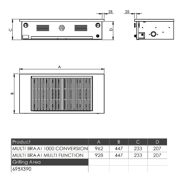 This gas braai will fit in to a 1000 mm wide box, to convert your existing wood braai to a gas braai.