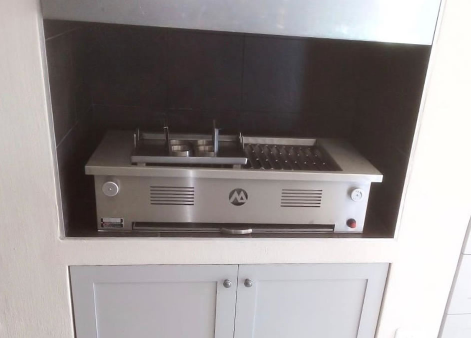 Here we installed a 1000 Multibraai Conversion gas grill in the existig opening. The client wanted a braai plate too as an additional extra. This option comes with 4 egg rings.